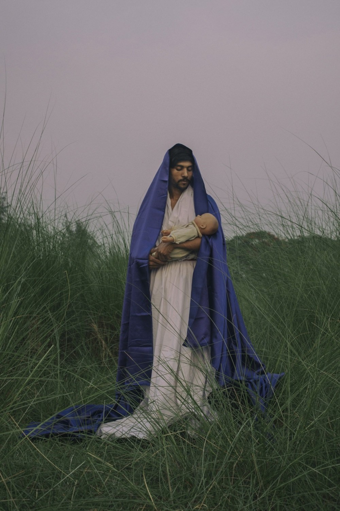 Une autre met en scène un acteur ou performeur déguisé en créature animale, assis dans une posture évoquant la prière ou la confession, mêlant sacré et caricature. Une autre encore détourne la représentation traditionnelle de la Vierge Marie, la plaçant dans un cadre visuel qui en altère profondément la dignité. Une dernière œuvre montre deux corps quasi nus dans une posture dramatique, rappelant une Pietà mais dénuée de toute dimension sacrée, réduisant un symbole de compassion à une performance corporelle. Ces détournements, accumulés les uns après les autres, composent un ensemble dont l’objectif semble clair : désacraliser, dérisionner et banaliser ce que le christianisme porte de plus central.