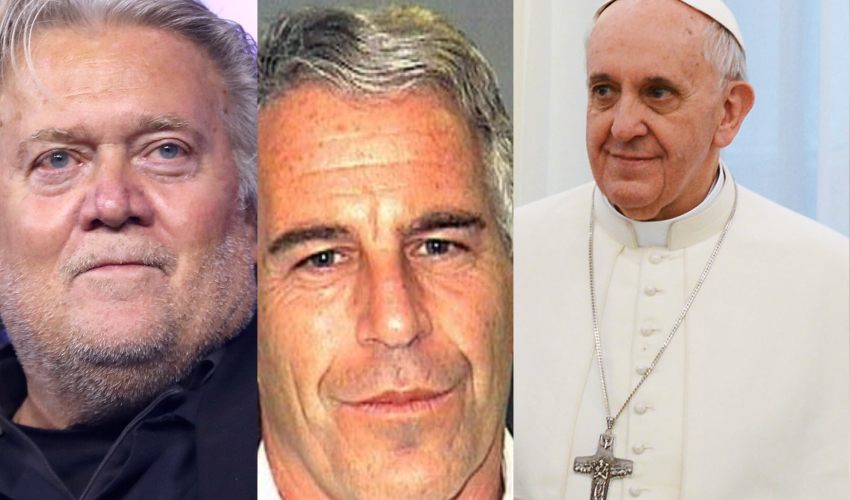 de gauche à droite : Steve Bannon, Jeffrey Epstein et le Pape François - DR