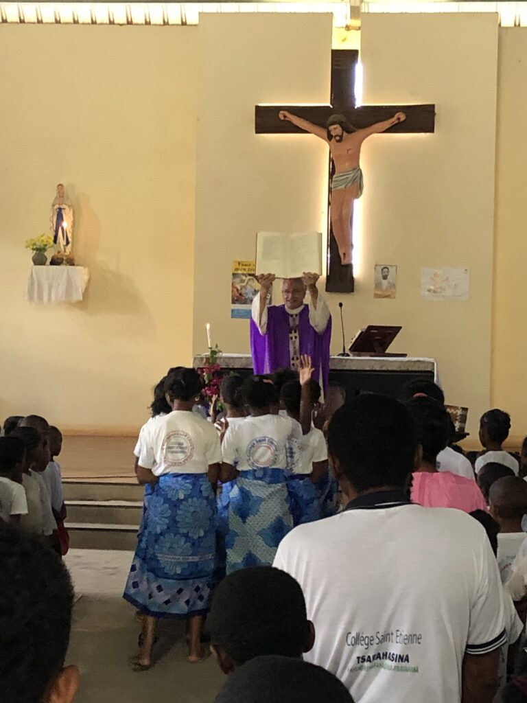 J’ai eu l’occasion de célébrer sous un manguier, par terre dans une case, dans une chapelle de brousse ou dans une grande église. Il faut toujours soigner la liturgie, les chants et aider la communauté à sentir que le sacrement que nous célébrons nous dépasse, que Dieu se rend vraiment présent dans ce sacrement. Dans certaines cultures les personnes prient plus par le chant que dans le silence. Il faut respecter ces habitudes. La célébration doit donc inclure des chants et parfois des danses qui portent à la prière mais il faut aussi mettre des temps de silence pour les aider à intérioriser la foi qui est souvent plus communautaire que personnelle.