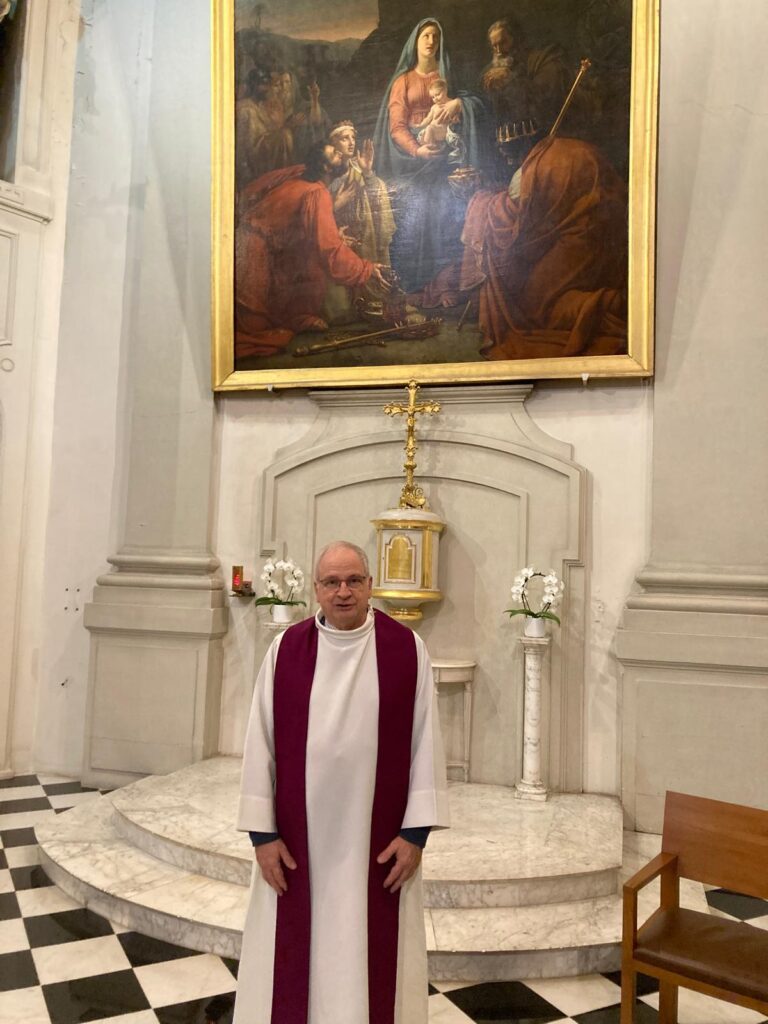 Le Père Bertrand de Bourran lors de notre rencontre à la Chapelle des Missions Etrangères, rue du Bac à Paris