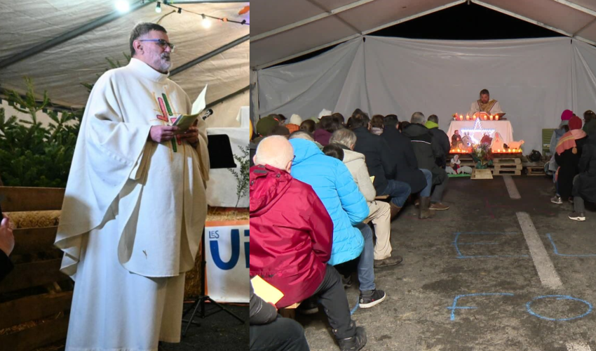 Dans la soirée, une messe de Noël a été célébrée sous une grande tente dressée sur le bitume.Un autre point de blocage de l’A64, à Briscous, a également accueilli une messe de Noël, célébrée par don Vincent Morandi, prêtre à Biarritz, venu répondre à la demande des agriculteurs mobilisés.À Carbonne comme à Briscous, l’autel a été installé de manière provisoire, sans autre cadre que celui de l’autoroute elle-même. Les chants et les prières propres à la fête de Noël ont ponctué ces célébrations vécues dans des conditions inhabituelles, au cœur d’un mouvement social toujours en cours.