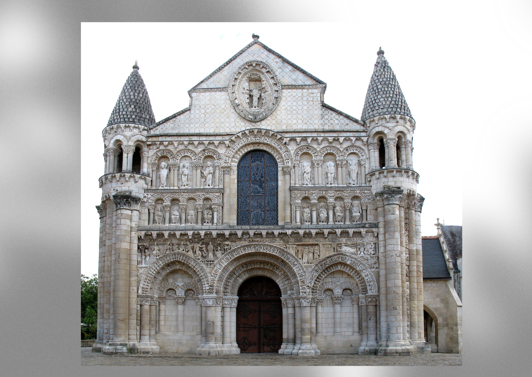 Notre-Dame-la-Grande est une église collégiale romane située au cœur de Poitiers, dont les premières mentions remontent au Xe siècle sous le nom de Sancta Maria Major, en référence à Sainte-Marie-Majeure de Rome. Rebâtie au XIe siècle, elle est consacrée en 1086 par celui qui deviendra le pape Urbain II. Au début du XIIe siècle, l’édifice est transformé, allongé et doté de sa célèbre façade sculptée, chef-d’œuvre du roman poitevin. Aux XVe et XVIe siècles, de riches familles poitevines ajoutent plusieurs chapelles privées. En 1562, les huguenots pillent l’église, détruisent les reliques et décapitent de nombreuses statues. Classée monument historique dès 1840, la collégiale connaît d’importantes restaurations au XIXe siècle, puis une vaste campagne entre 1992 et 2004. Une nouvelle restauration, lancée en 2024, vise à sauvegarder ses peintures intérieures, ce qui entraîne sa fermeture au public jusqu’en 2027. Édifice emblématique, Notre-Dame-la-Grande demeure aujourd’hui l’un des plus beaux témoignages de l’art roman en France.