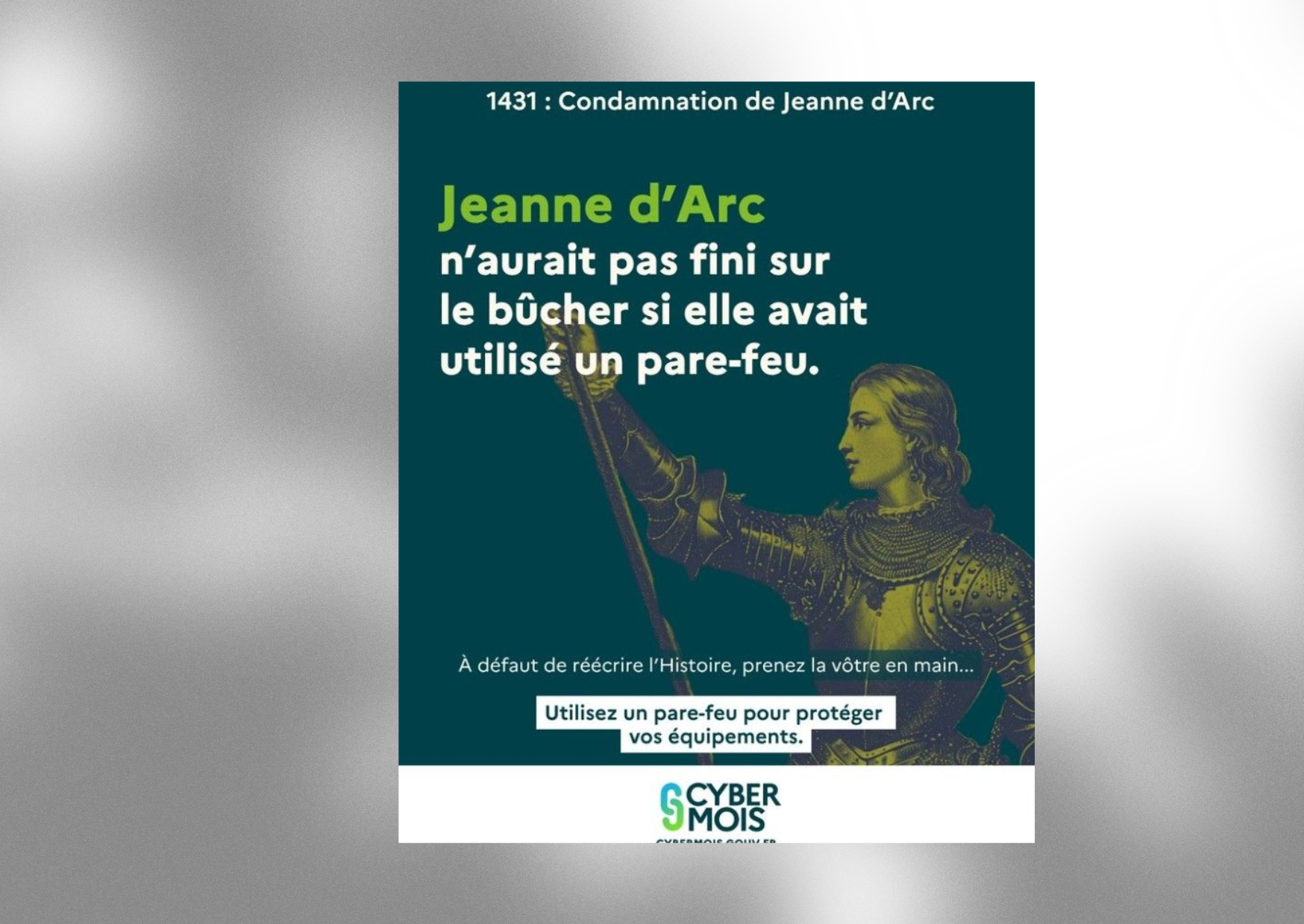 L’affiche publiée par le service public cybermalveillance.gouv.fr montre Jeanne d’Arc accompagnée du slogan : « Jeanne d’Arc n’aurait pas fini sur le bûcher si elle avait utilisé un pare-feu. » Officiellement, une campagne de prévention. En réalité, une moquerie d’État visant la patronne secondaire de la France, figure de pureté et de foi, canonisée par l’Église.Ce n’est pas un incident isolé. Depuis des années, les symboles chrétiens sont systématiquement effacés ou tournés en dérision : crèches interdites, croix démontées, calvaires détruits, films catholiques censurés. Au nom d’une laïcité dévoyée, on efface peu à peu la foi du paysage national. Désormais, c’est la dérision institutionnelle qui achève le travail.