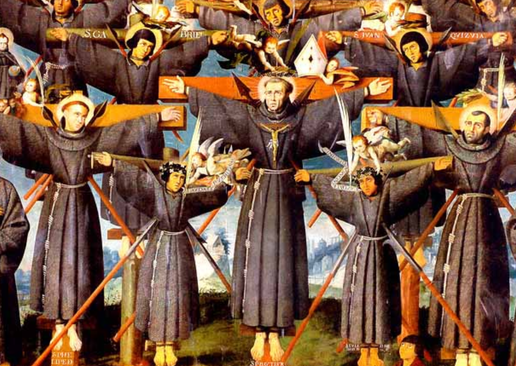 Dix ans plus tard, la répression s’intensifie. En février 1597, vingt-six chrétiens sont arrêtés. Le groupe est composé de religieux jésuites et franciscains, de laïcs tertiaires, de catéchistes, de médecins et même de jeunes enfants. Parmi eux se trouve Paul Miki, premier jésuite japonais, connu pour son zèle missionnaire et son talent de prédicateur.