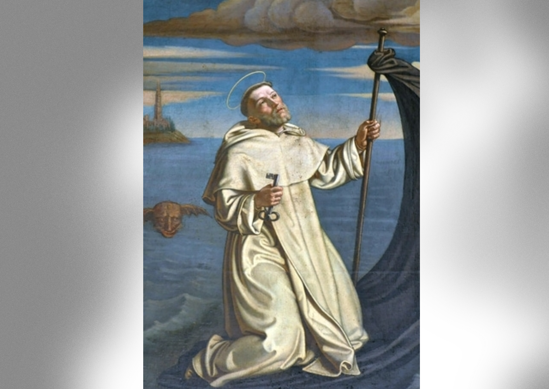 Les sources anciennes soulignent chez lui un caractère libre et ferme. Une tradition rapporte que, retenu contre son gré par le roi de Majorque, il aurait étendu son manteau sur la mer pour regagner Barcelone, épisode légendaire qui fera de lui le saint patron des véliplanchistes. Derrière le récit merveilleux transparaît surtout la conviction profonde d’un homme qui ne transige pas avec sa mission.Parvenu à un âge très avancé, il demande à être relevé de sa charge de maître de l’Ordre, sans pour autant se retirer de la vie de l’Église. Il s’éteint à Barcelone le 6 janvier 1275, après une vie exceptionnellement longue pour son époque, laissant l’image d’un prêtre dominicain alliant science juridique, sens pastoral et fidélité inébranlable à l’appel de Dieu.La liturgie résume justement son héritage, prêtre de l’Ordre des Prêcheurs, célèbre par sa science du droit canonique, auteur d’une Somme très utile sur le sacrement de pénitence, et maître général attentif à la réforme et à la mission.