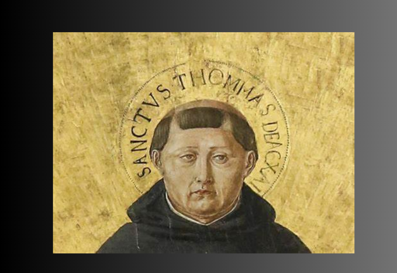Saint Thomas d’Aquin, né en 1225 à Roccasecca, près de Naples, fut un penseur et théologien d’exception. Entré dans l’ordre des Dominicains malgré les réticences de sa famille, il choisit la pauvreté et la recherche de la vérité, valeurs au cœur de l’idéal dominicain. Formé à Paris sous la direction de saint Albert le Grand, il s’impose rapidement comme une figure incontournable de la théologie médiévale.