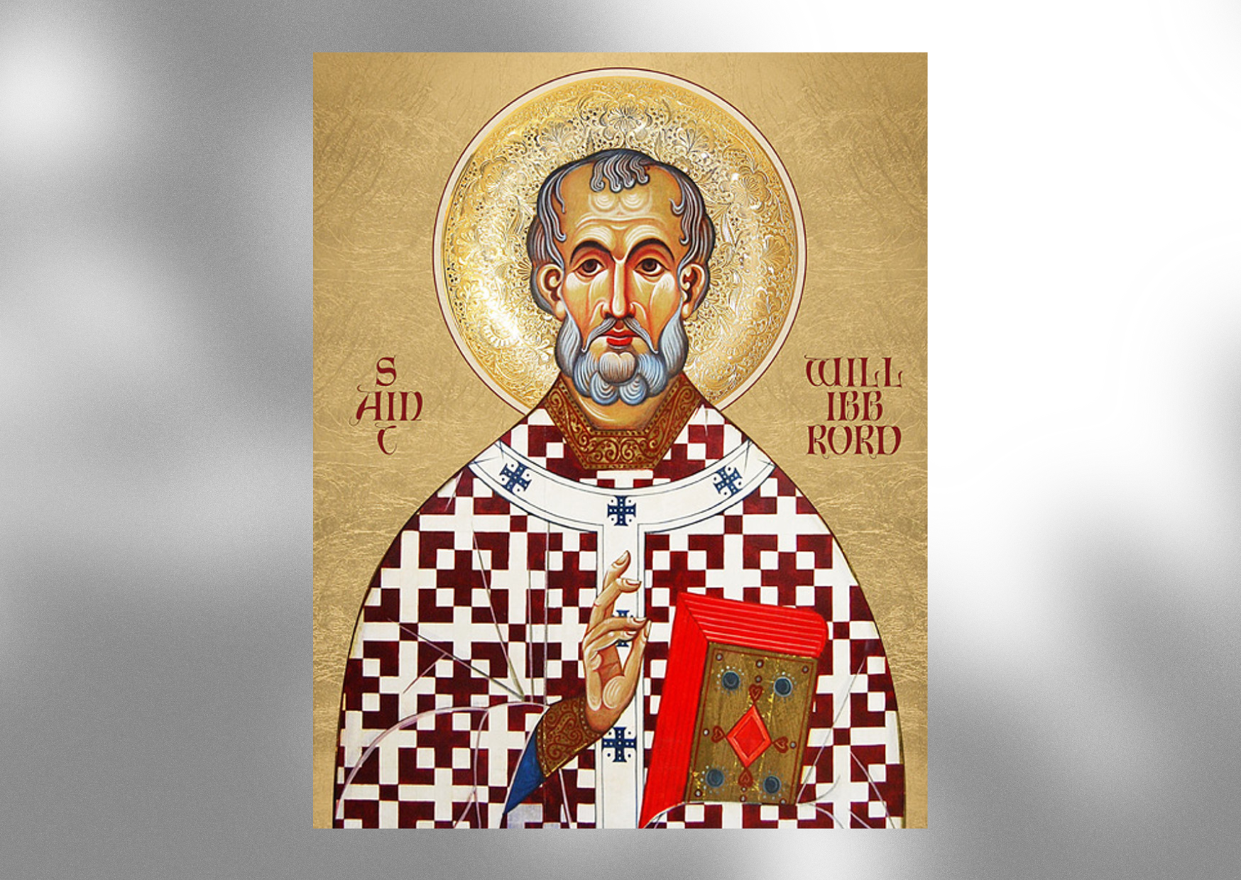 En 690, mû par le désir d’annoncer le Christ aux peuples païens du nord de l’Europe, il partit avec onze moines anglo-saxons évangéliser la Frise, région aujourd’hui située entre les Pays-Bas et l’Allemagne. Accueilli favorablement par Pépin de Herstal, père de Pépin le Bref et grand-père de Charlemagne, il trouva en lui un précieux soutien politique et matériel pour sa mission.Souhaitant agir en pleine obéissance à l’Église, Willibrord se rendit à Rome afin de recevoir du pape Serge Ier le mandat officiel de prêcher l’Évangile. Le Saint-Père le consacra évêque d’Utrecht, confirmant ainsi son rôle d’évangélisateur auprès des peuples du nord.Établi à Utrecht, Willibrord fonda ensuite l’abbaye d’Echternach, au Luxembourg, qui devint le centre spirituel et missionnaire de son œuvre. C’est de là qu’il partit pour de nouvelles missions, notamment en Frise et au Danemark, semant partout la foi chrétienne avec une persévérance exemplaire.