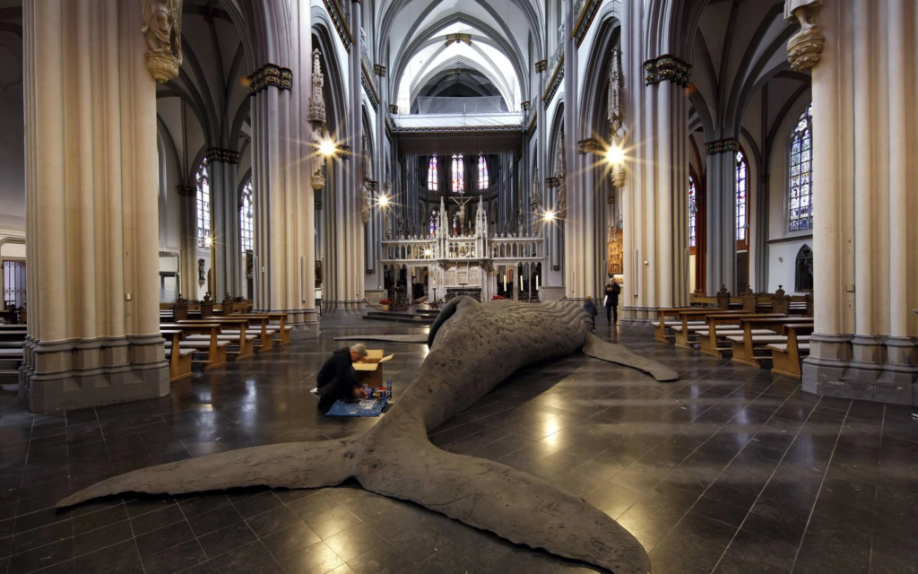 Dans la cathédrale de Xanten ( Rhénanie-du-Nord) la reproduction grandeur nature d’une baleine morte a été installée en plein centre de la nef. L’installation, intitulée « Projet Baleine Moulée Xanten » , a été inaugurée par un office religieux. Autrement dit, dans une cathédrale consacrée au culte divin, on a placé au cœur de l’espace liturgique le moulage d’un cétacé échoué, massif, inerte. Il ne s’agit pas d’un détail esthétique. Il s’agit d’un acte symbolique.