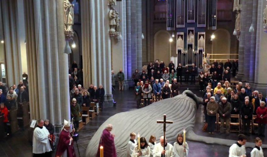 Dans la cathédrale de Xanten ( Rhénanie-du-Nord) la reproduction grandeur nature d’une baleine morte a été installée en plein centre de la nef. L’installation, intitulée « Projet Baleine Moulée Xanten » , a été inaugurée par un office religieux. Autrement dit, dans une cathédrale consacrée au culte divin, on a placé au cœur de l’espace liturgique le moulage d’un cétacé échoué, massif, inerte. Il ne s’agit pas d’un détail esthétique. Il s’agit d’un acte symbolique.